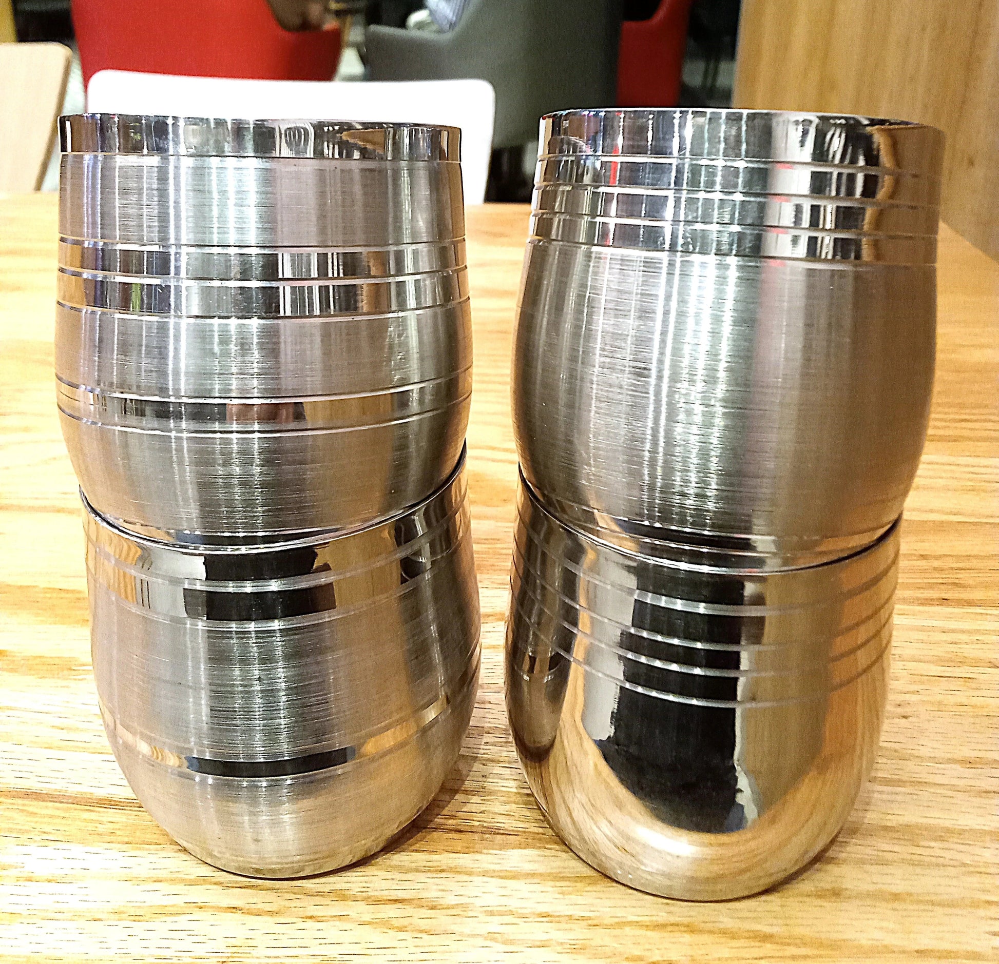 Shiny, durable, and elegant our stainless steel glasses come in 4 stunning designs: Nova, Crown, Regal, and Piano. Perfect for daily use and special occasions!
